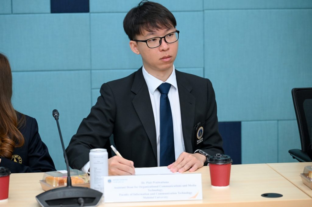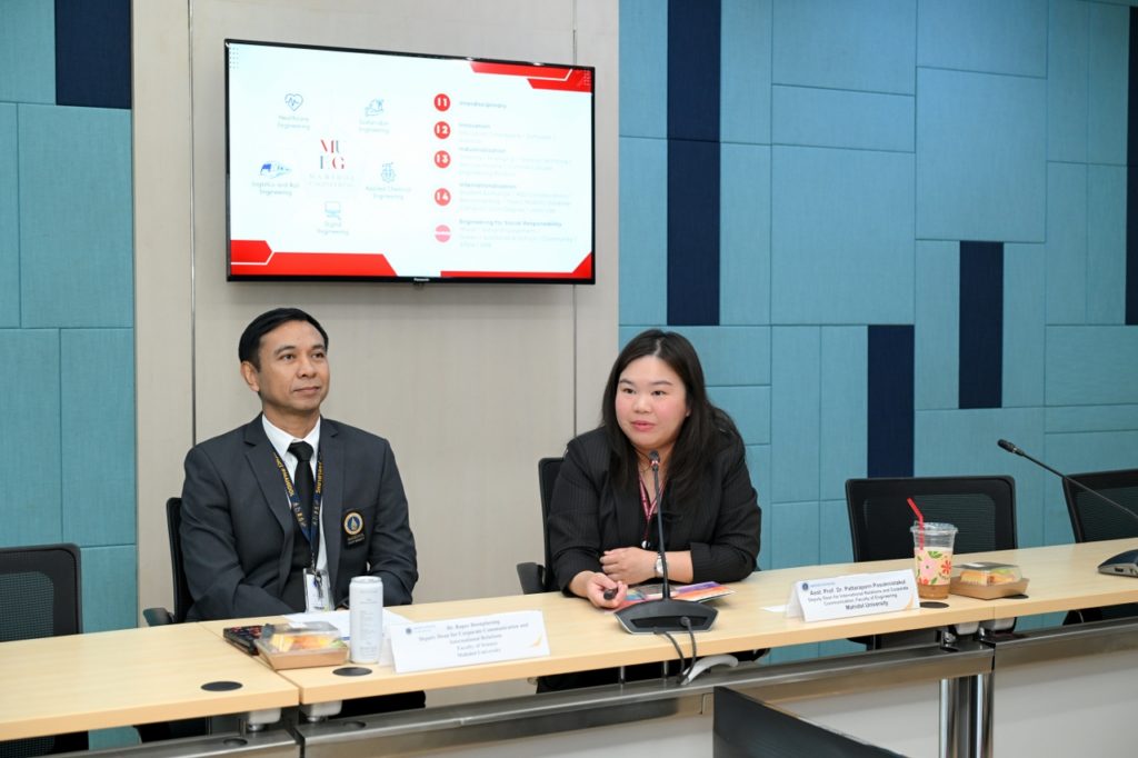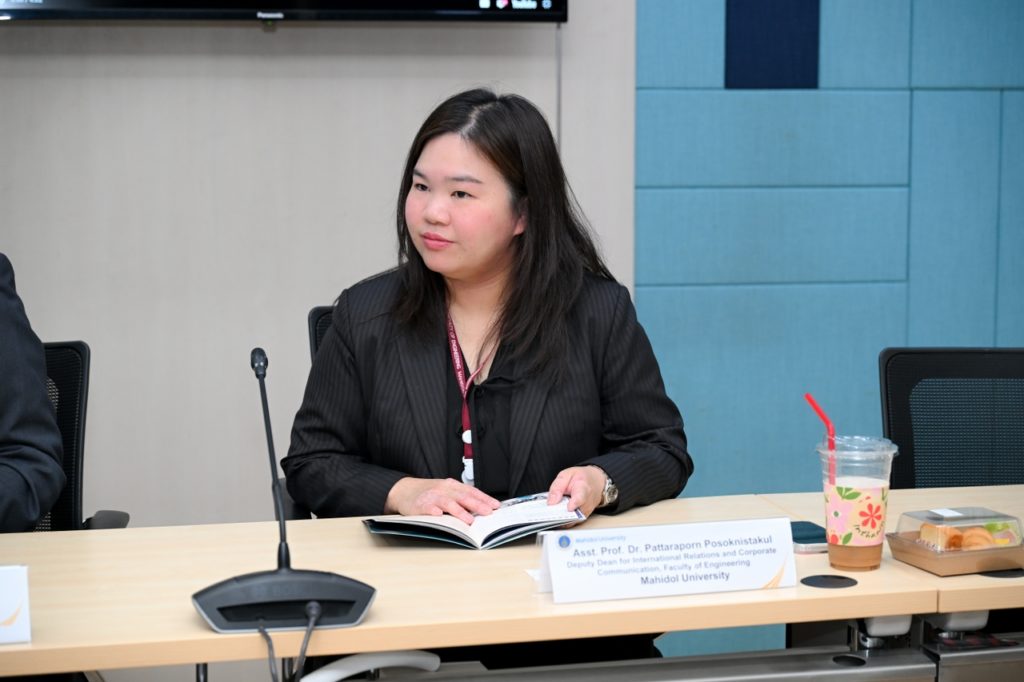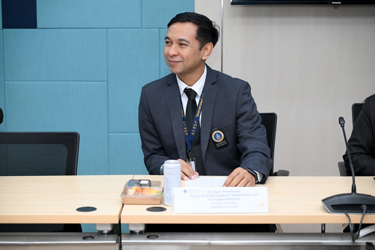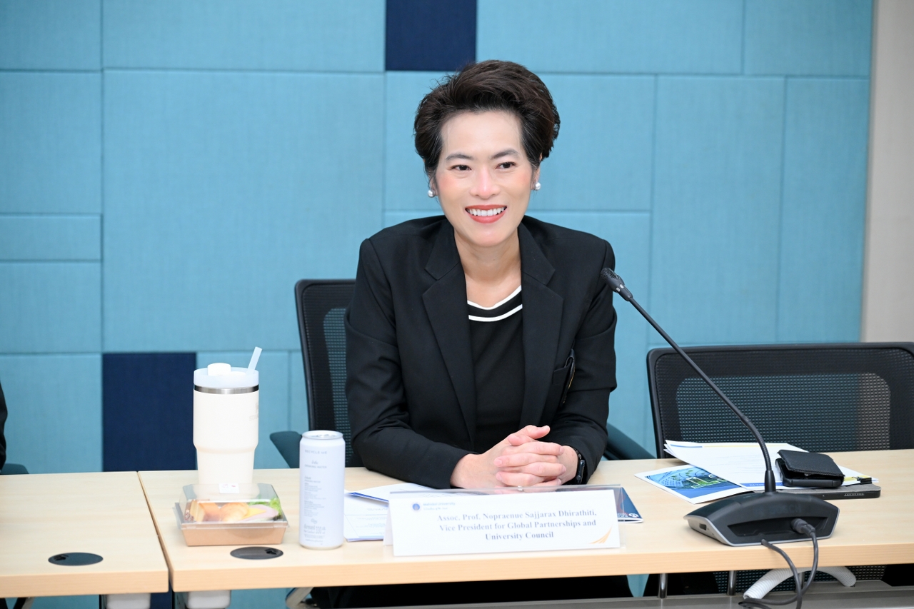 วันที่ 20 พฤศจิกายน 2568 รองศาสตราจารย์ ดร.นภเรณู สัจจรักษ์ ธีระฐิติ รองอธิการบดีฝ่ายวิเทศสัมพันธ์และสภามหาวิทยาลัย มหาวิทยาลัยมหิดล พร้อมด้วย อาจารย์ ดร.ระพี บุญเปลื้อง รองคณบดีฝ่ายสื่อสารองค์กรและวิเทศสัมพันธ์ คณะวิทยาศาสตร์ ผู้ช่วยศาสตราจารย์ ดร.ภัทรพร โปสกนิษฐกุล รองคณบดีฝ่ายวิเทศสัมพันธ์และสื่อสารองค์กร คณะวิศวกรรมศาสตร์ และอาจารย์ ดร.พิสิฐ ไพรวัฒนา ผู้ช่วยคณบดีฝ่ายสื่อสารองค์กรและเทคโนโลยีสื่อ คณะเทคโนโลยีสารสนเทศและการสื่อสาร ร่วมให้การต้อนรับ ผู้บริหารจาก The Hong Kong University of Science and Technology (Guangzhou) (HKUST (GZ)) เขตบริหารพิเศษฮ่องกงแห่งสาธารณรัฐประชาชนจีน นำโดย Prof. Ting Chuen PONG, Vice President (Administration & Business), Prof. Angela NG, Assistant Vice-President for Institutional Advancement (Global Engagement), Prof. Jeffrey Xu Yu, Acting Thrust Head of Data Science and Analytics, Mr. Jing FU, Head of Global Affairs Department, Dr. Zhuoya KANG, Officer of Global Affairs Department ณ ห้อง OSM 1 สำนักงานอธิการบดี มหาวิทยาลัยมหิดล ศาลายา