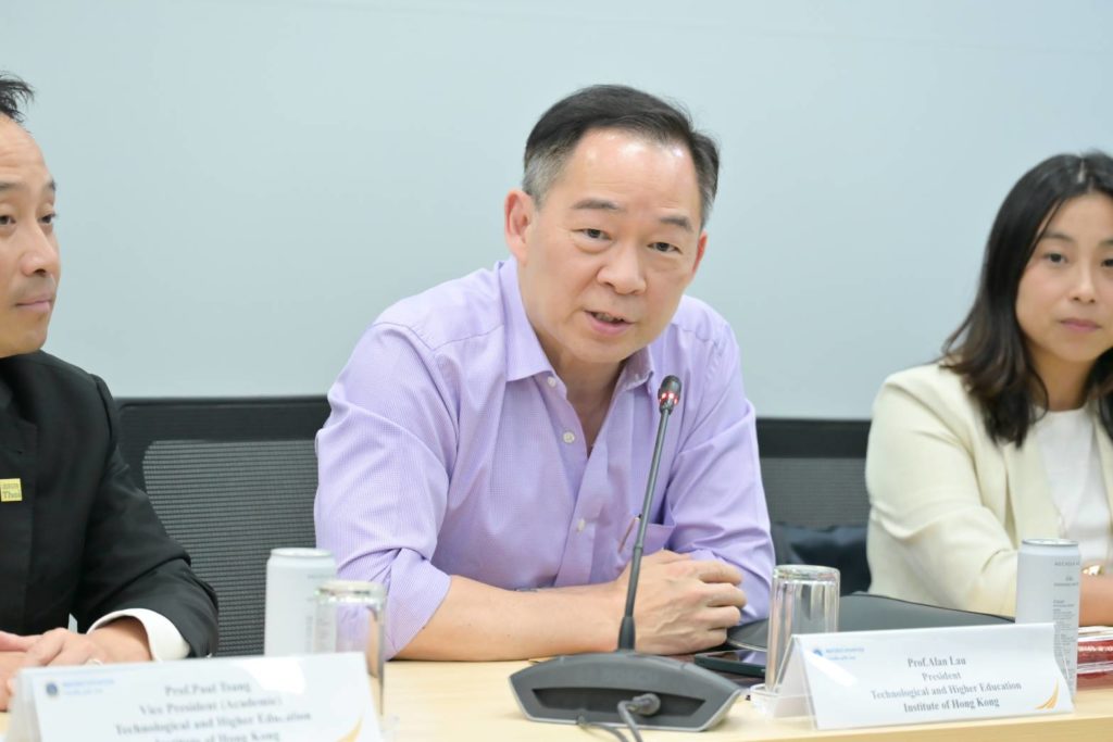 วันที่ 17 พฤศจิกายน 2568 รองศาสตราจารย์ ดร.นภเรณู สัจจรักษ์ ธีระฐิติ รองอธิการบดีฝ่ายวิเทศสัมพันธ์และสภามหาวิทยาลัย พร้อมด้วย รองศาสตราจารย์ ดร.ธนภัทร์ วานิชานนท์ คณบดีคณะวิศวกรรมศาสตร์ ผู้ช่วยศาสตราจารย์ ดร.ภัทรพร โปสกนิษฐกุล รองคณบดีฝ่ายวิเทศสัมพันธ์และสื่อสารองค์กร คณะวิศวกรรมศาสตร์ ผู้ช่วยศาสตราจารย์ ดร.ธนพล นรเสฏฐ์ ผู้ช่วยคณบดีฝ่ายการศึกษา คณะเทคโนโลยีสารสนเทศและการสื่อสาร และอาจารย์ชยุตม์ เจษฎาวรานนท์ วิทยาลัยดุริยางคศิลป์ มหาวิทยาลัยมหิดล ให้การต้อนรับ Prof. Alan Lau, President พร้อมด้วย Prof. Paul Tsang, Vice President (Academic), Ir. Dr. Penny Pan, Assistant Professor, Department of Construction, Environment and Engineering, Dr. Lok Yin Tang, Assistant Professor, Department of Digital Innovation and Technology และ Ms. Annie Leung, Manager (Partnership Engagement) Technological and Higher Education Institute of Hong Kong เขตบริหารพิเศษฮ่องกงแห่งสาธารณรัฐประชาชนจีน ณ ห้อง OSM 1 สำนักงานอธิการบดี มหาวิทยาลัยมหิดล ศาลายา
