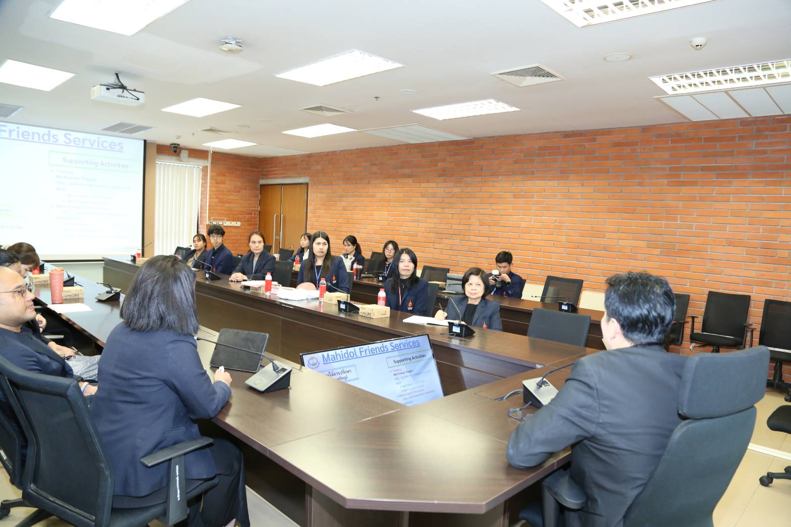 วันที่ 24 ธันวาคม 2568 รองศาสตราจารย์ เรืออากาศโท ทันตแพทย์ชัชชัย คุณาวิศรุต รองอธิการบดีฝ่ายกิจการนักศึกษาและศิษย์เก่าสัมพันธ์ มหาวิทยาลัยมหิดล ให้การต้อนรับ ผู้ช่วยศาสตราจารย์ ดร.ประภา ยุทธไตร รองคณบดีฝ่ายบริการวิชาการและการพยาบาลหลักสูตรเฉพาะทาง คณะพยาบาลศาสตร์อัครราชกุมารี ราชวิทยาลัยจุฬาภรณ์ พร้อมคณะศึกษาดูงานโครงการพัฒนาศูนย์ความเป็นเลิศในการบริการและให้คำปรึกษาทางสุขภาพจิต ในโอกาสเข้าศึกษาดูงานศูนย์ให้คำปรึกษาสุขภาพใจ (MU Friends) มหาวิทยาลัยมหิดล เพื่อแลกเปลี่ยนเรียนรู้เกี่ยวกับการดำเนินงานด้านการส่งเสริมสุขภาพจิต การพัฒนาทักษะการจัดการอารมณ์และความเครียดของนักศึกษาและบุคลากร เพื่อป้องกันภาวะฉุกเฉินทางจิตใจที่อาจเกิดขึ้นได้ ณ ศูนย์ให้คำปรึกษาสุขภาพใจ (MU Friends) ชั้น 3 ศูนย์การเรียนรู้มหิดล มหาวิทยาลัยมหิดล ศาลายา
