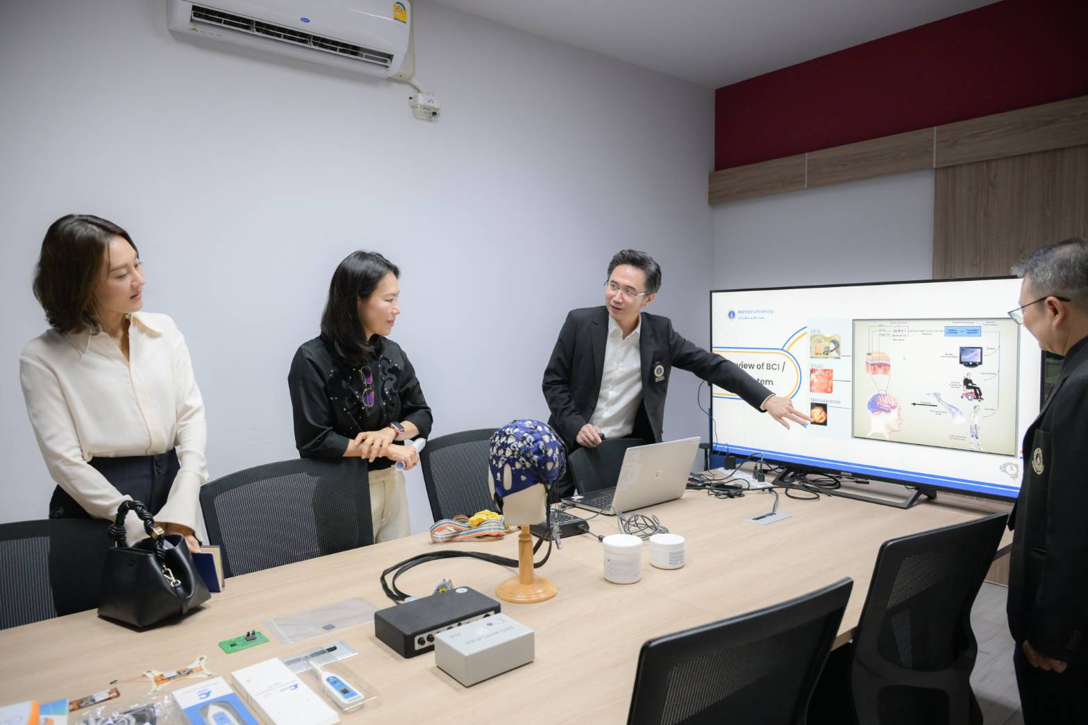 วันที่ 11 พฤศจิกายน 2568 ศาสตราจารย์ ดร.ยศชนัน วงศ์สวัสดิ์ รองอธิการบดีฝ่ายวิจัย มหาวิทยาลัยมหิดล พร้อมด้วย รองศาสตราจารย์ ดร.ธัญญ์นลิน วิญญูประสิทธิ์ ผู้ช่วยอธิการบดีฝ่ายวิจัย มหาวิทยาลัยมหิดล รองศาสตราจารย์ ดร.ชลัท ศานติวรางคณา ผู้อำนวยการสถาบันโภชนาการ รองศาสตราจารย์ นายแพทย์อดิศักดิ์ ผลิตผลการพิมพ์ ผู้อำนวยการสถาบันแห่งชาติเพื่อการพัฒนาเด็กและครอบครัว รองศาสตราจารย์ ดร.กภ.จารุกูล ตรีไตรลักษณะ คณบดีคณะกายภาพบำบัด รองศาสตราจารย์ ดร.วิริยะ เตชะรุ่งโรจน์ ผู้อำนวยการสถาบันบริหารจัดการเทคโนโลยีและนวัตกรรม และคณะผู้บริหารของส่วนงานมหาวิทยาลัยมหิดล จาก คณะวิศวกรรมศาสตร์ และวิทยาลัยดุริยางคศิลป์ ร่วมให้การต้อนรับคณะผู้บริหารจาก บริษัท ไทยซัมมิท โอโตพาร์ท อินดัสตรี จำกัด นำโดย คุณชนาพรรณ จึงรุ่งเรืองกิจ รองประธานกรรมการอาวุโส พร้อมด้วย คณะผู้บริหารและผู้แทนบริษัท ในโอกาสเข้าเยี่ยมชมและศึกษาดูงานเกี่ยวกับการสร้างความร่วมมือในการสนับสนุนหลักสูตรและงานวิจัยด้านการช่วยเหลือผู้ที่มีความต้องการพิเศษ ณ มหาวิทยาลัยมหิดล ศาลายา