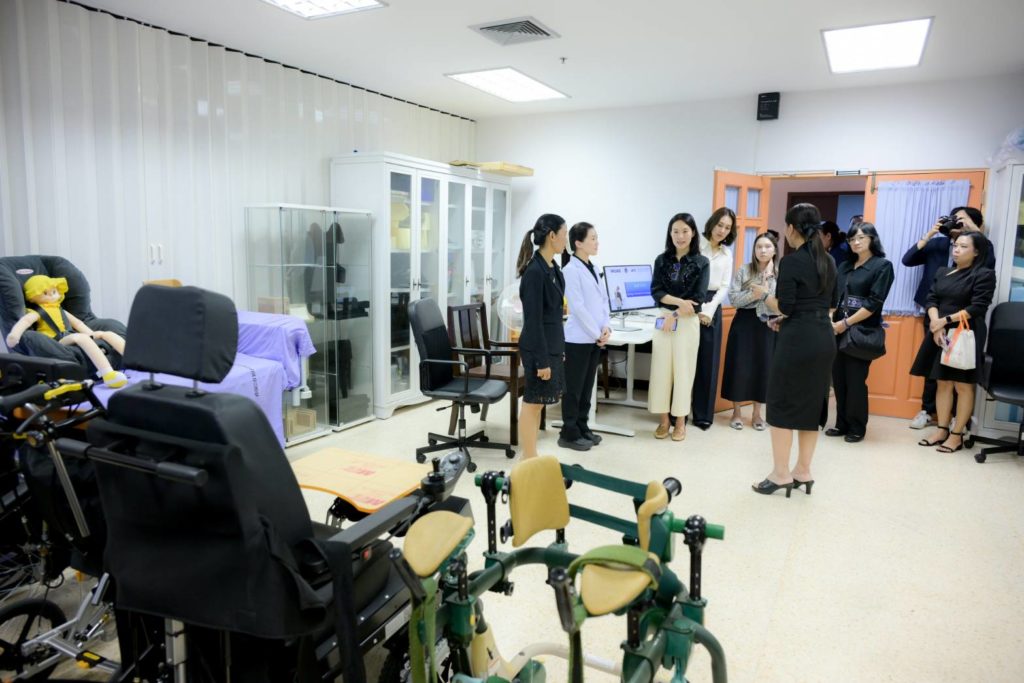 โอกาสนี้ ได้เยี่ยมชมและรับฟังการนำเสนอผลงานจากหลายหน่วยงานของมหาวิทยาลัยมหิดล อาทิ ห้องปฏิบัติการ Smart Motion Analysis and Rehabilitation Technology (SMART LAB) และห้องปฏิบัติการการเชื่อมต่อสัญญาณสมองด้วยคอมพิวเตอร์ (BCI LAB) คณะวิศวกรรมศาสตร์ พื้นที่การเรียนรู้แบบ Inclusive Classroom และห้องต้นกล้า–ห้องต้นรัก สถาบันแห่งชาติเพื่อการพัฒนาเด็กและครอบครัว รวมถึงศูนย์นวัตกรรมด้านอาหารและโรงงานผลิตอาหารทางการแพทย์ สถาบันโภชนาการ ซึ่งมุ่งเน้นการพัฒนาเทคโนโลยีและโภชนาการเพื่อสุขภาพและผู้มีภาวะพิเศษ โดยมีคณาจารย์และผู้บริหารจากแต่ละหน่วยงานร่วมให้ข้อมูลและแลกเปลี่ยนองค์ความรู้ ประกอบด้วย ผู้ช่วยศาสตราจารย์ แพทย์หญิงแก้วตา นพมณีจำรัสเลิศ รองผู้อำนวยการฝ่ายบริการคลินิกและศูนย์พัฒนาเด็กปฐมวัย สถาบันแห่งชาติเพื่อการพัฒนาเด็กและครอบครัว อาจารย์ ดร.ปรารถนา ตปนีย์ รองผู้อำนวยการด้านบริหารและพัฒนาวิชาการ สถาบันโภชนาการ โดยในภาคบ่าย ได้เข้าเยี่ยมชม วิทยาลัยดุริยางคศิลป์ มหาวิทยาลัยมหิดล โดยมี อาจารย์อลงกรณ์ เหล่าสายเชื้อ รองคณบดีฝ่ายบริหาร และผู้ช่วยศาสตราจารย์ ดร.ธนพล เศตะพราหมณ์ รองคณบดีฝ่ายวิชาการ วิจัย และนวัตกรรม ให้การต้อนรับ พร้อมนำชมการแสดงดนตรีไทย และเยี่ยมชมการสาธิต “การใช้ดนตรีบำบัดกลุ่มเด็กพิเศษ” โดย อาจารย์วิพุธ เคหะสุวรรณ อาจารย์ประจำสาขาวิชาดนตรีบำบัด จากนั้น เยี่ยมชมศูนย์วิจัยและห้องปฏิบัติการด้านการเคลื่อนไหว รวมถึงศูนย์กายภาพและกิจกรรมบำบัดในเด็ก คณะกายภาพบำบัด เพื่อเรียนรู้แนวทางการบูรณาการองค์ความรู้ด้านสุขภาพ เทคโนโลยี และศิลปะ เพื่อการพัฒนาคุณภาพชีวิตผู้ที่มีความต้องการพิเศษอย่างรอบด้าน