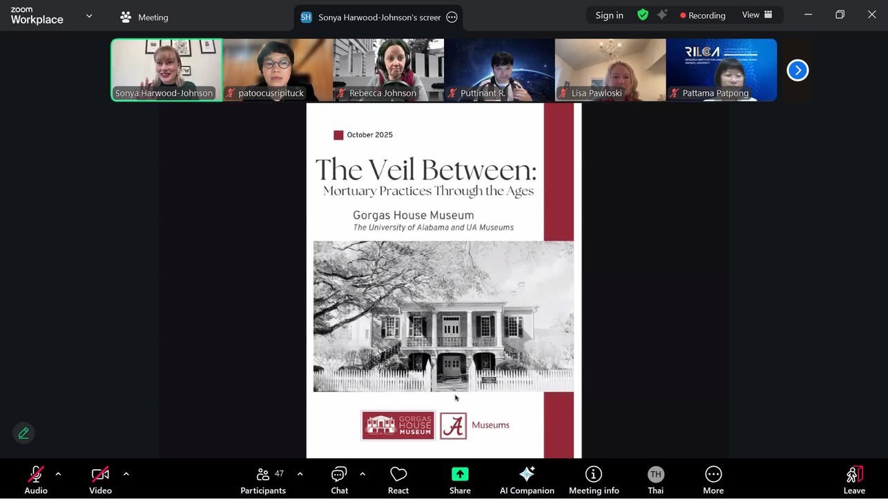 การเสวนาครั้งนี้ เป็นเวทีแลกเปลี่ยนองค์ความรู้ด้านการวิจัยและการออกแบบนิทรรศการ ได้มองลึกไปถึงคำถามสำคัญว่า พิพิธภัณฑ์ควรเล่าเรื่องความตายอย่างไร และขอบเขตของจริยธรรมในการจัดแสดงอยู่ตรงไหน เมื่อความตายไม่ใช่เพียงวัตถุจัดแสดง หากแต่เกี่ยวข้องกับความเชื่อ ความรู้สึก และประสบการณ์ชีวิตของผู้คนในแต่ละสังคม โดยการเสวนาได้รับเกียรติจากผู้ทรงคุณวุฒิทั้งในและต่างประเทศ ได้แก่ Ms. Sonya Harwood-Johnson จากพิพิธภัณฑ์บ้านกอร์กาส มหาวิทยาลัยอลาบามา ประเทศสหรัฐอเมริกา ผู้ช่วยศาสตราจารย์ ดร.พธู คูศรีพิทักษ์ จาก iCulture และพิพิธภัณฑ์มานุษยวิทยาวัฒนธรรม สถาบันวิจัยภาษาและวัฒนธรรมเอเชีย มหาวิทยาลัยมหิดล และผู้ช่วยศาสตราจารย์ ดร.ปัทมา พัฒน์พงษ์ จาก iCulture สถาบันวิจัยภาษาและวัฒนธรรมเอเชีย มหาวิทยาลัยมหิดล ร่วมถ่ายทอด “เบื้องหลัง” การทำงานจริงของนิทรรศการ ตั้งแต่กระบวนการวิจัยภาคสนาม การคัดเลือกและเรียบเรียงเนื้อหา การใช้ภาษาในการสื่อสาร ไปจนถึงการตัดสินใจเชิงจริยธรรมในการนำเสนอเรื่องความตาย พิธีกรรมศพ และความทรงจำของผู้ล่วงลับ ผ่านกรอบการศึกษาทางประวัติศาสตร์ ภาษา แลชาติพันธุ์วรรณนาในบริบทวัฒนธรรมที่แตกต่างกัน