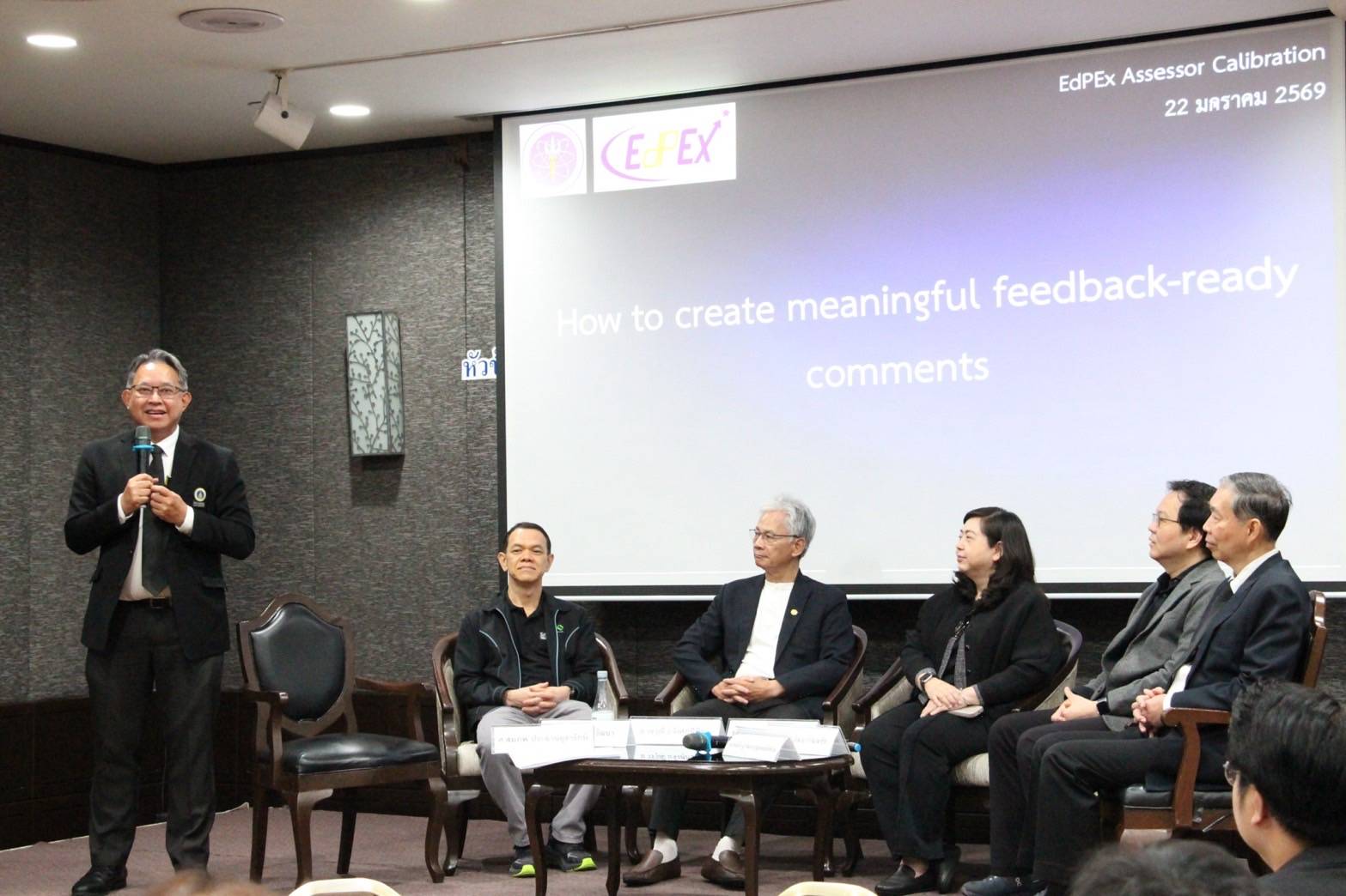 วันที่ 22 มกราคม 2569 ศาสตราจารย์ ดร. เภสัชกรสมภพ ประธานธุรารักษ์ รองอธิการบดีฝ่ายแผนกลยุทธ์ พัฒนาคุณภาพและพันธกิจเพื่อสังคม มหาวิทยาลัยมหิดล ได้รับเกียรติเป็นวิทยากรบรรยายแลกเปลี่ยนองค์ความรู้ในหัวข้อ “How to Create Meaningful Feedback-Ready Comments” ในโครงการประชุมเชิงปฏิบัติการเรื่อง “การอบรมผู้ตรวจประเมินคุณภาพองค์กรด้วยเกณฑ์ EdPEx (EdPEx Assessors Training)” กิจกรรมที่ 3 “มาตรฐานและแนวทางการประเมินตามเกณฑ์ EdPEx (EdPEx Assessor Calibration)” ซึ่งจัดโดยสำนักงานปลัดกระทรวงการอุดมศึกษา วิทยาศาสตร์ วิจัยและนวัตกรรม ณ โรงแรมเซ็นจูรี่ พาร์ค กรุงเทพมหานคร