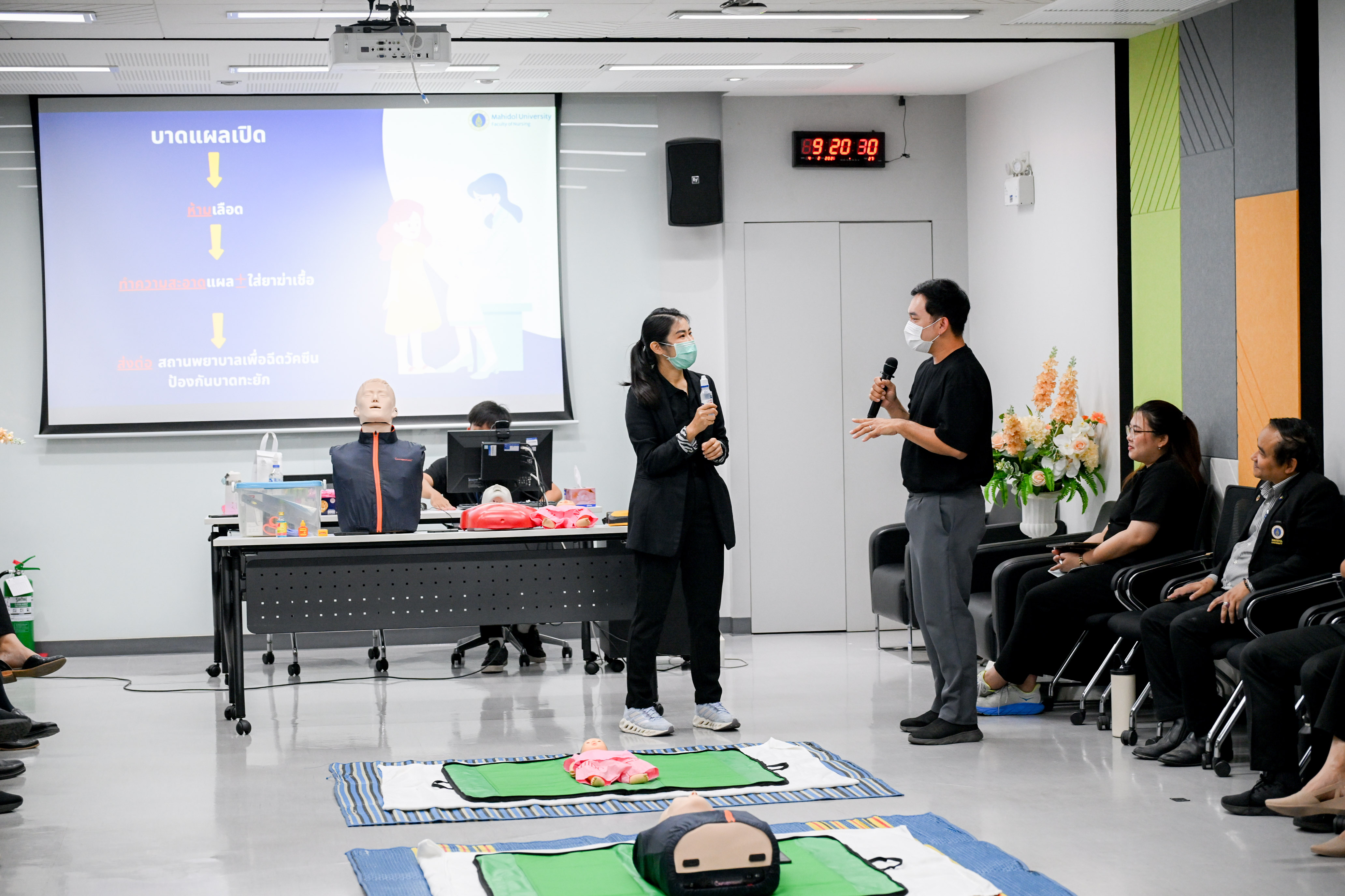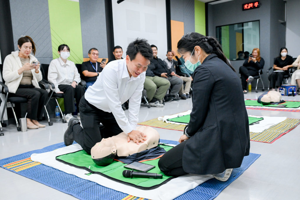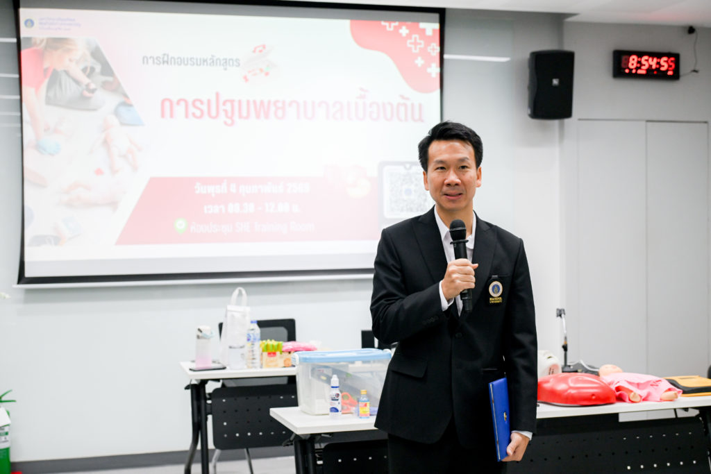 วันที่ 4 กุมภาพันธ์ 2569 ผู้ช่วยศาสตราจารย์ ดร.อิทธิโชติ จักรไพวงศ์ รองอธิการบดีฝ่ายกายภาพและสิ่งแวดล้อม มหาวิทยาลัยมหิดล เป็นประธานเปิดโครงการฝึกอบรมหลักสูตร “การปฐมพยาบาลเบื้องต้น” โดยมี อาจารย์ ดร.วรรณวิไล อุตรวิเชียร คณะพยาบาลศาสตร์ มหาวิทยาลัยมหิดล เป็นวิทยากรในการบรรยาย เพื่อเสริมสร้างความรู้ ความเข้าใจ รวมถึงทักษะที่ถูกต้องในการปฐมพยาบาลเบื้องต้นให้แก่บุคลากรที่เกี่ยวข้อง ให้สามารถตอบสนองต่อสถานการณ์ฉุกเฉิน ช่วยลดความรุนแรงของอุบัติเหตุ และเพิ่มโอกาสรอดชีวิตของผู้ประสบเหตุได้มากขึ้น ณ ห้องประชุม SHE Training Room ศูนย์บริหารความปลอดภัย อาชีวอนามัย และสภาพแวดล้อมในการทำงาน มหาวิทยาลัยมหิดล