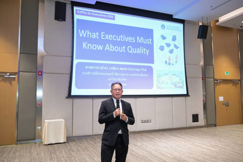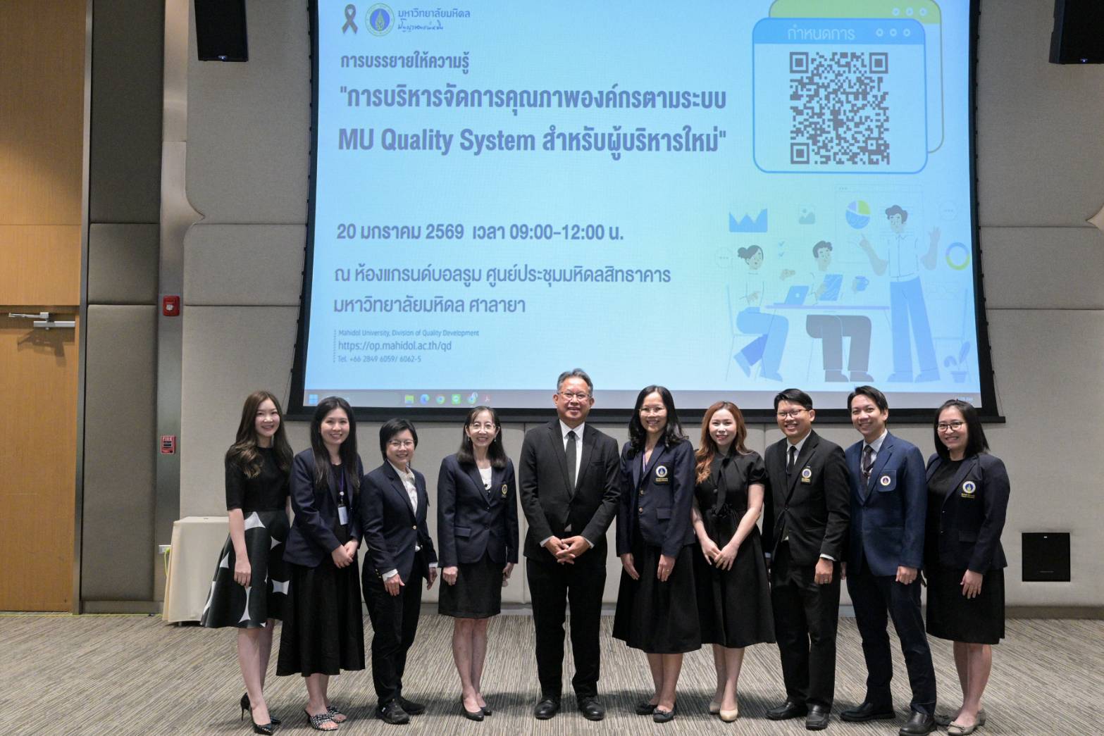 โครงการดังกล่าว กองพัฒนาคุณภาพ มหาวิทยาลัยมหิดล จัดขึ้นเพื่อเสริมสร้างความเข้าใจเชิงระบบด้านการบริหารจัดการคุณภาพ และยกระดับบทบาทผู้นำองค์กรให้สอดคล้องกับทิศทางยุทธศาสตร์ของมหาวิทยาลัย ให้แก่ ผู้บริหารที่เข้าสู่ตำแหน่งไม่เกิน 1 ปี ประกอบด้วย ผู้บริหารระดับสูงของส่วนงาน และผู้บริหารระดับกลางของส่วนงาน ได้รับทราบ นโยบาย ทิศทาง และกลยุทธ์สำคัญของมหาวิทยาลัยมหิดลในปัจจุบัน รวมถึงการบูรณาการหลักการพัฒนาที่ยั่งยืนในการบริหารองค์กร ตลอดจนเสริมสร้างความเข้าใจเกี่ยวกับ แนวคิด บทบาท และหลักการบริหารเพื่อการพัฒนาคุณภาพองค์กรตามกรอบ EdPEx/Baldrige ซึ่งเป็นกรอบสำคัญในการขับเคลื่อนมหาวิทยาลัยสู่ความเป็นเลิศ โดยเน้นบทบาทของผู้นำในฐานะแบบอย่างและผู้ขับเคลื่อนการเปลี่ยนแปลงอย่างมีประสิทธิภาพ