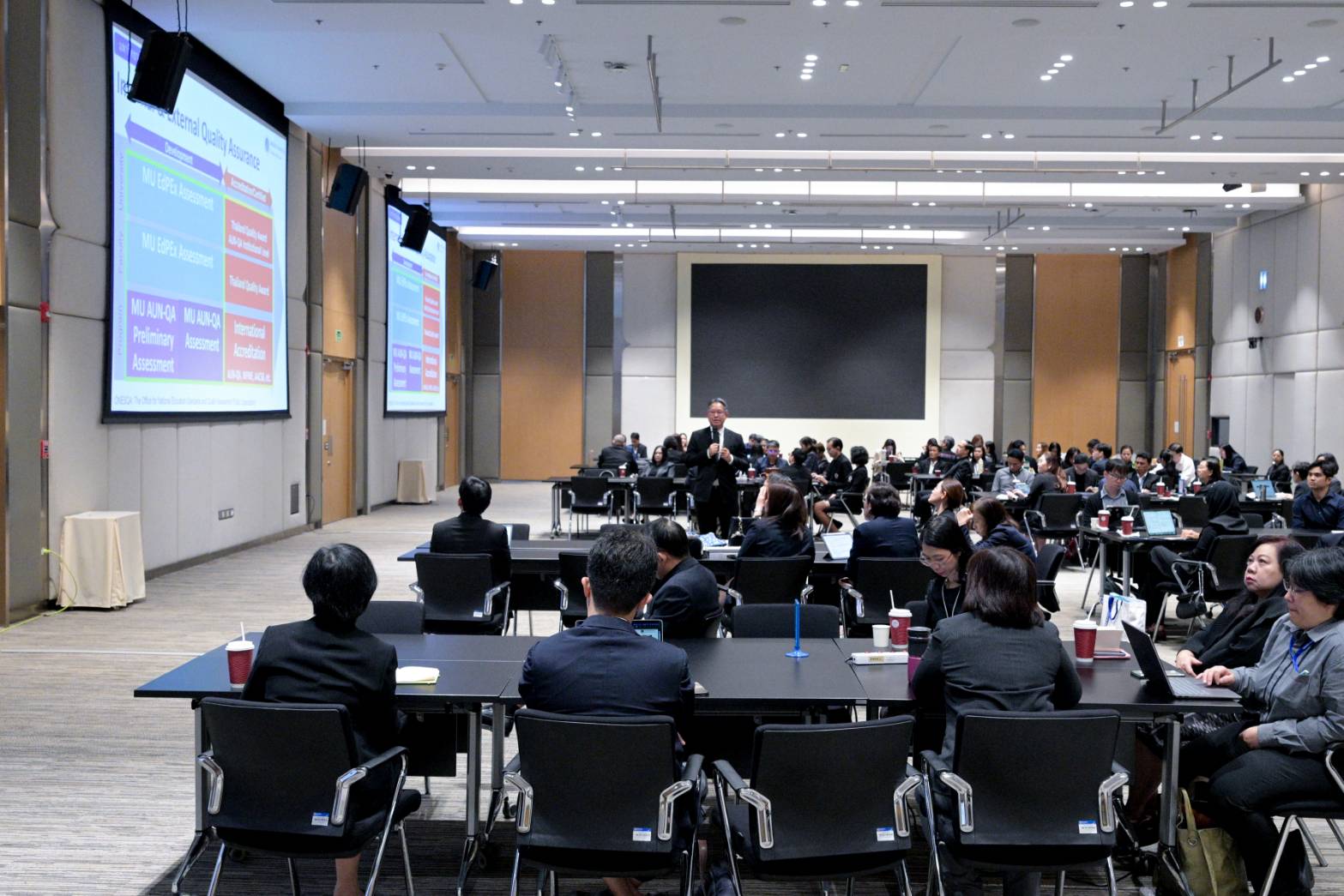 วันที่ 20 มกราคม 2569 ศาสตราจารย์ ดร. เภสัชกรสมภพ ประธานธุรารักษ์ รองอธิการบดีฝ่ายแผนกลยุทธ์ พัฒนาคุณภาพและพันธกิจเพื่อสังคม มหาวิทยาลัยมหิดล เป็นประธานกล่าวต้อนรับพร้อมบรรยายพิเศษในหัวข้อ “นโยบาย ทิศทาง และกลยุทธ์สำคัญของมหาวิทยาลัยมหิดลกับการขับเคลื่อนองค์กรสู่ความยั่งยืน” พร้อมถ่ายทอดองค์ความรู้ในหัวข้อ “แนวคิด บทบาท และหลักการบริหารเพื่อการพัฒนาคุณภาพตามกรอบ EdPEx/Baldrige ในฐานะผู้นำการเปลี่ยนแปลง” เพื่อเสริมสร้างความเข้มแข็งด้านการนำองค์กรและการพัฒนาคุณภาพอย่างยั่งยืนของมหาวิทยาลัยมหิดล ณ ห้องแกรนด์บอลรูม ศูนย์ประชุมมหิดลสิทธาคาร มหาวิทยาลัยมหิดล ศาลายา