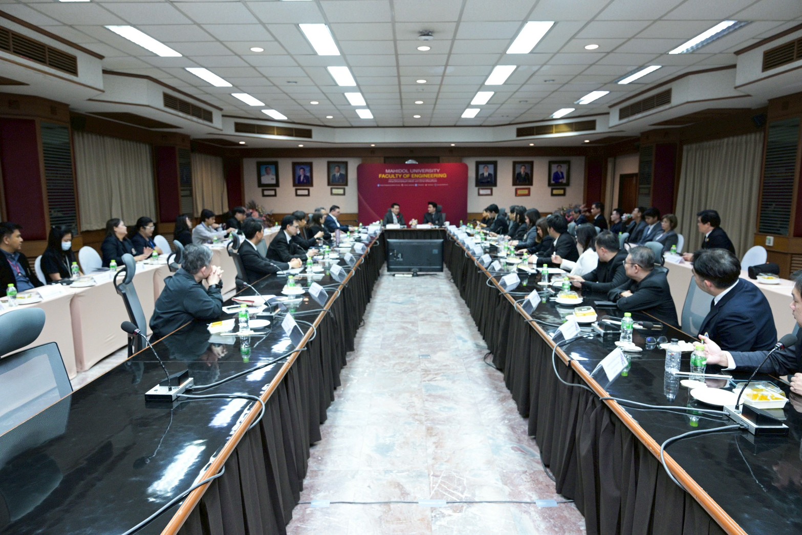 วันที่ 8 มกราคม 2569 ศาสตราจารย์ นายแพทย์ปิยะมิตร ศรีธรา อธิการบดีมหาวิทยาลัยมหิดล พร้อมด้วยคณะผู้บริหารมหาวิทยาลัยมหิดล ร่วมติดตามผลการดำเนินงานตามข้อตกลงการปฏิบัติงานของส่วนงาน (PA-Visit) ประจำปีงบประมาณ 2569 ของ คณะวิศวกรรมศาสตร์ มหาวิทยาลัยมหิดล โดยมี รองศาสตราจารย์ ดร.ธนภัทร์ วานิชานนท์ คณบดีคณะวิศวกรรมศาสตร์ มหาวิทยาลัยมหิดล พร้อมด้วยผู้บริหารคณะให้การต้อนรับ และนำเสนอผลการดำเนินงานที่โดดเด่นในรอบปีงบประมาณที่ผ่านมา และแผนการดำเนินงานที่สำคัญของปีงบประมาณ 2569 ของคณะวิศวกรรมศาสตร์ มหาวิทยาลัยมหิดล พร้อมรับฟังข้อเสนอแนะการดำเนินงานในปีงบประมาณ 2569 ณ ห้องประชุม R-114 อาคาร 1 คณะวิศวกรรมศาสตร์ มหาวิทยาลัยมหิดล ศาลายา