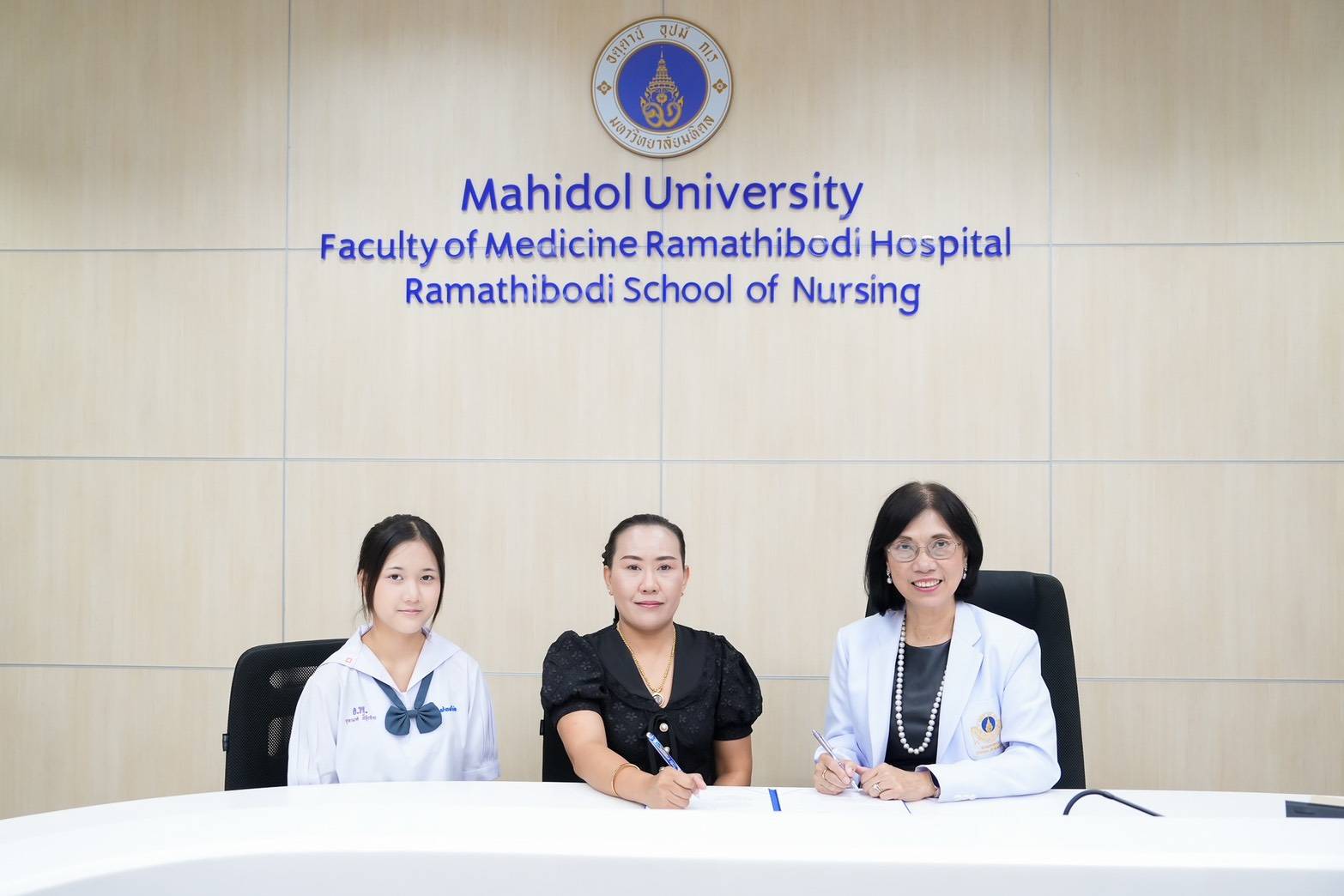 วันที่ 30 มกราคม 2569 รองศาสตราจารย์ ดร.พูลสุข เจนพานิชย์ วิสุทธิพันธ์ ผู้อำนวยการโรงเรียนพยาบาลรามาธิบดี คณะแพทยศาสตร์โรงพยาบาลรามาธิบดี มหาวิทยาลัยมหิดล พร้อมด้วยคณะผู้บริหาร คณาจารย์โรงเรียนพยาบาลรามาธิบดี ร่วมให้การต้อนรับ ด.ญ.จุฑามาศ สีจุ้ยจ้าย หรือ “น้องปิ่นมุก” บุตรสาวของ พลตรีธีระยุทธ สีจุ้ยจ้าย หรือ “จ่าจุ้ย” ทหารผู้อุทิศตนเพื่อปกป้องประเทศ จากเหตุการณ์ปะทะชายแดนไทย-กัมพูชา บริเวณช่องสายตะกู จังหวัดบุรีรัมย์ เมื่อวันที่ 28 กรกฎาคม 2568 ที่ผ่านมา ณ ห้อง 422 ชั้น 4 อาคารเรียนและปฏิบัติการรวมด้านการแพทย์และโรงเรียนพยาบาลรามาธิบดี คณะแพทยศาสตร์โรงพยาบาลรามาธิบดี มหาวิทยาลัยมหิดล
