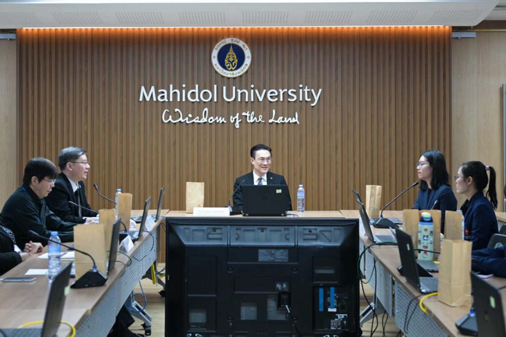 วันที่ 23 มกราคม 2569 ศาสตราจารย์ นายแพทย์วรพงษ์ มนัสเกียรติ รองอธิการบดีฝ่ายวิชาการและบริการวิชาการ มหาวิทยาลัยมหิดล พร้อมด้วย ศาสตราจารย์ ดร. นายแพทย์นรัตถพล เจริญพันธุ์ ผู้ช่วยอธิการบดีฝ่ายวิชาการและบริการวิชาการมหาวิทยาลัยมหิดล ให้การต้อนรับคณะศึกษาดูงานเรื่อง “การจัดทำหลักเกณฑ์และวิธีการประเมินเพื่อแต่งตั้งพนักงานมหาวิทยาลัยประเภทสนับสนุน ให้มีความก้าวหน้าในตำแหน่งที่สูงขึ้น” จากราชวิทยาลัยจุฬาภรณ์ โดยมี นางสาวชลธิชา เดชฟุ้ง รักษาการหัวหน้าฝ่ายทรัพยากรบุคคล ราชวิทยาลัยจุฬาภรณ์ นำคณะเข้าศึกษาดูงาน เพื่อเสริมสร้างความรู้ แลกเปลี่ยนประสบการณ์ และคำแนะนำในการจัดทำหลักเกณฑ์และวิธีการประเมินเพื่อให้พนักงานราชวิทยาลัยจุฬาภรณ์มีความก้าวหน้าในสายงาน ณ ห้องประชุม 530 ชั้น 5 สำนักงานอธิการบดี มหาวิทยาลัยมหิดล