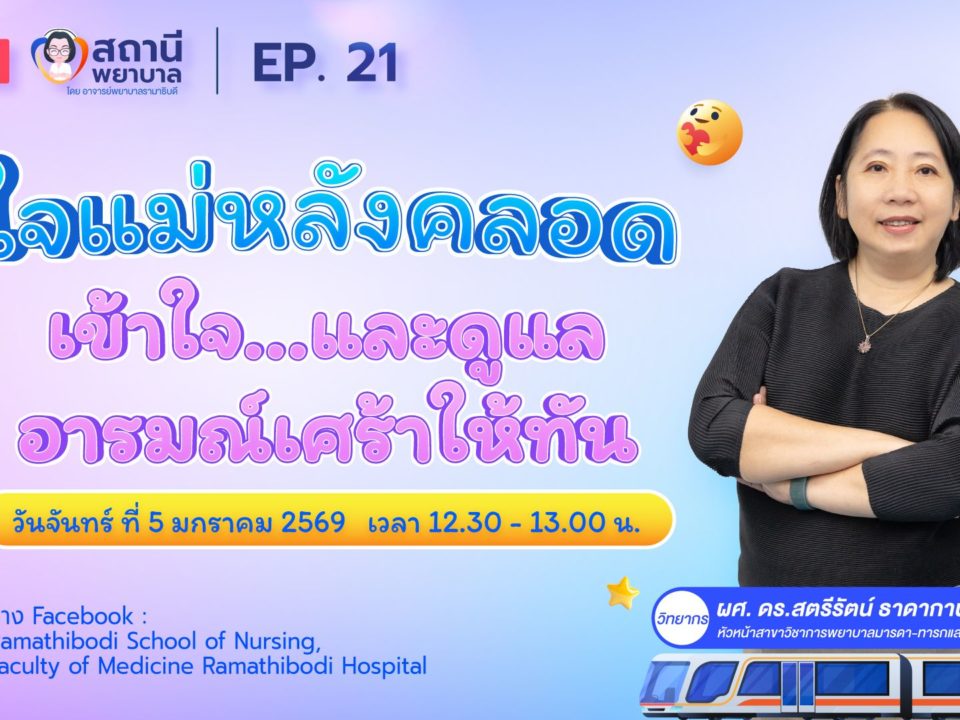 รายการสถานีพยาบาล EP.21 “ใจแม่หลังคลอด..เข้าใจ..และดูแลอารมณ์เศร้าให้ทัน” โดย อาจารย์ โรงเรียนพยาบาลรามาธิบดี คณะแพทยศาสตร์โรงพยาบาลรามาธิบดี มหาวิทยาลัยมหิดล