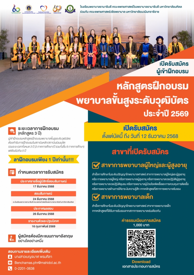 📚หลักสูตรฝึกอบรมพยาบาลขั้นสูงระดับวุฒิบัตร โรงเรียนพยาบาลรามาธิบดี คณะแพทยศาสตร์โรงพยาบาลรามาธิบดี มหาวิทยาลัยมหิดล📚
