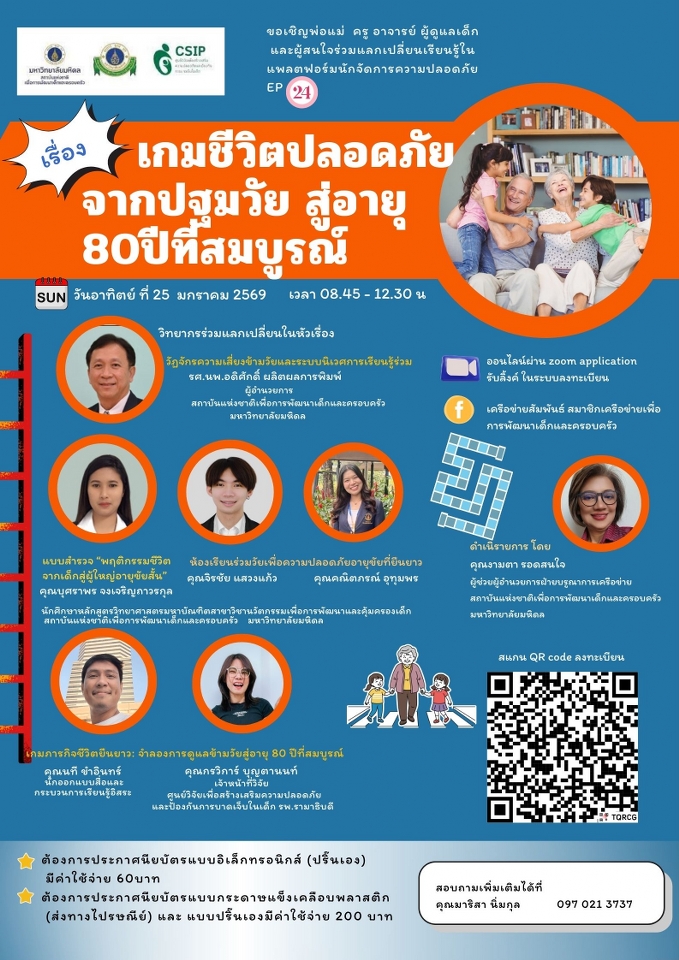 📣 ชีวิตปลอดภัย (index pointing right) เป็นภารกิจชีวิตที่ทุกวัยมีบทบาท