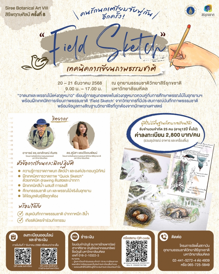 กับโครงการสิรีพฤกษศิลป์ ครั้งที่ 𝟴 “เทคนิคการเขียนภาพธรรมชาติ (𝐹𝑖𝑒𝑙𝑑 𝑆𝑘𝑒𝑡𝑐ℎ)”