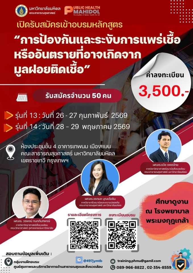 🎙️สนใจสมัครเลย❗โอกาสดี ๆ ที่ไม่ควรพลาด หลักสูตรที่ช่วยให้คุณปลอดภัยจากอันตรายของ “มูลฝอยติดเชื้อ” ✨