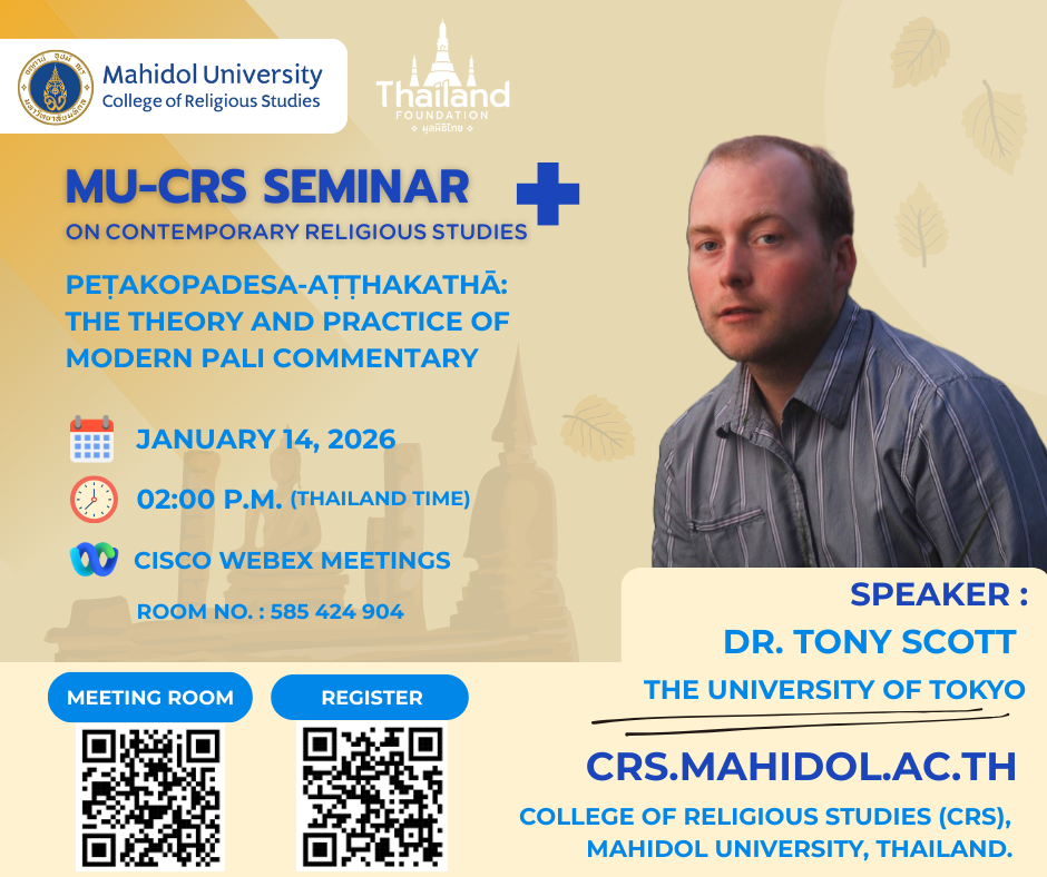 👏👏We are pleased to invite faculty members, staff, and students to participate in Mahidol University’s MU-CRS Seminar on Contemporary Religious Studies Hosts International Seminar in Collaboration with the Thailand Foundation.