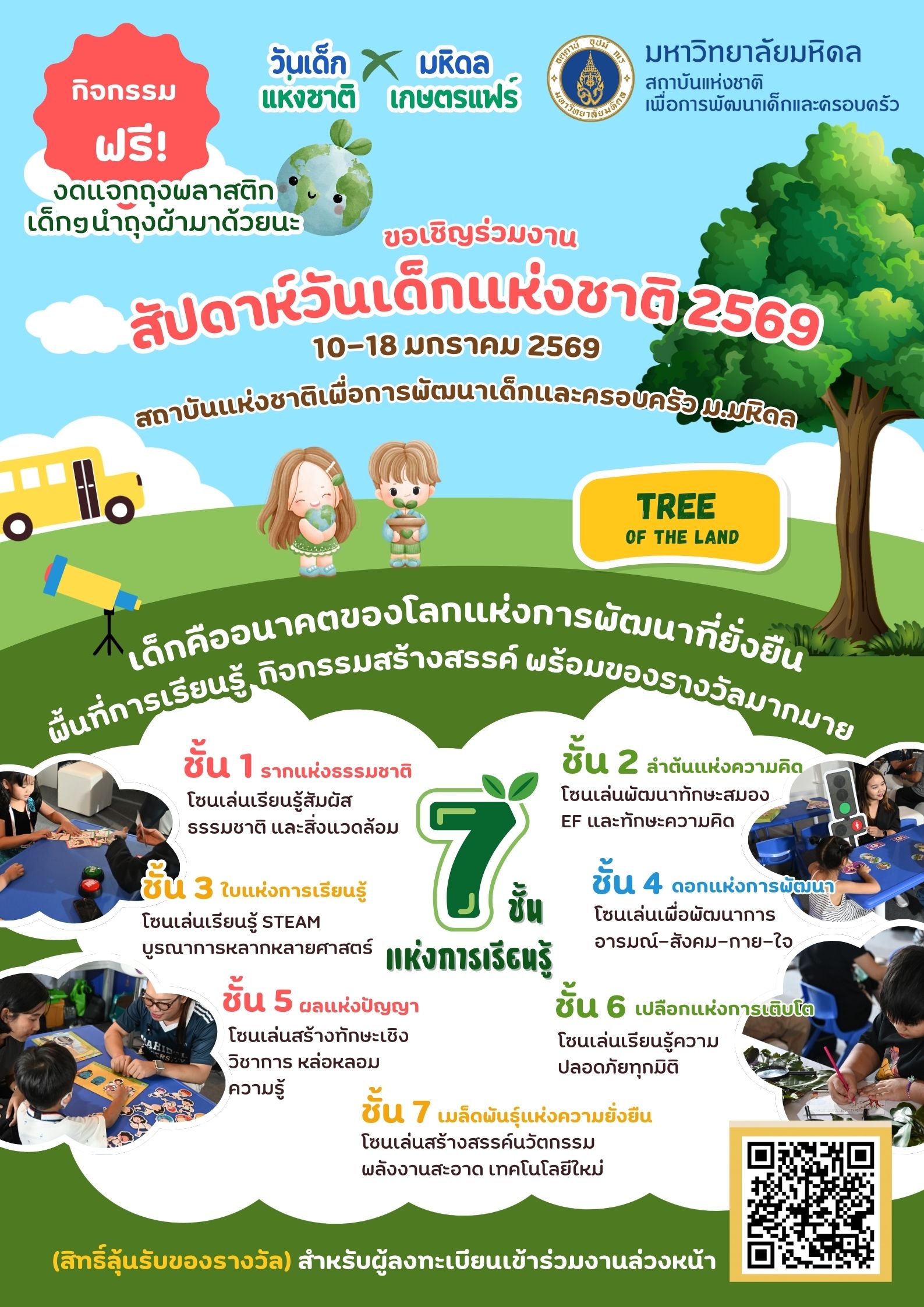 ✨ พบกับนิทรรศการ TREE OF THE LAND – 7 ชั้นแห่งการเรียนรู้ โซนกิจกรรมสร้างสรรค์ เวิร์กชอปสนุก ๆ และลุ้นของรางวัลมากมาย เข้าร่วมฟรีตลอดงาน!