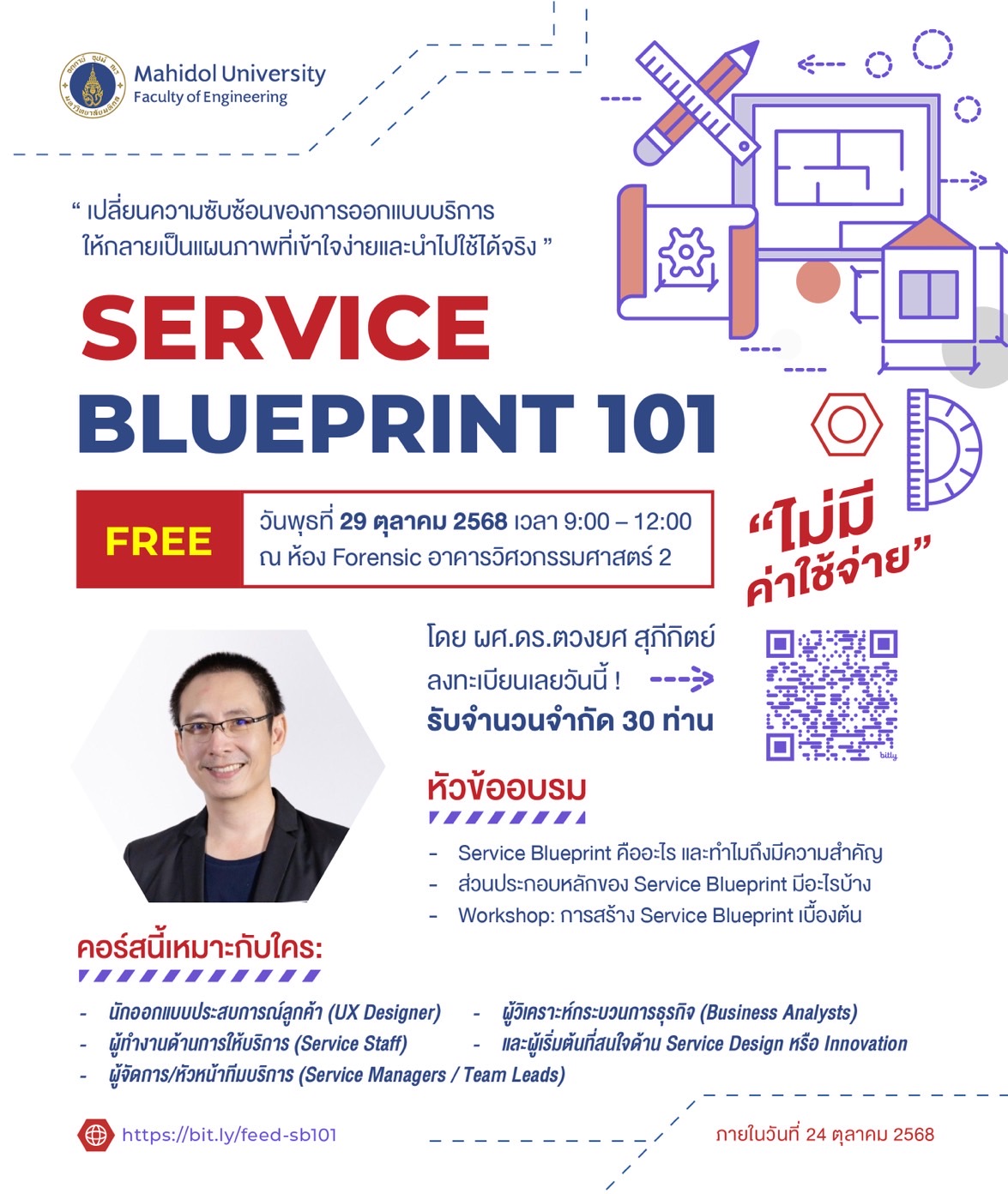 UX Designer | Business Analyst | Service Staff | Service Managers | ผู้สนใจด้าน Service Design หรือ Innovation