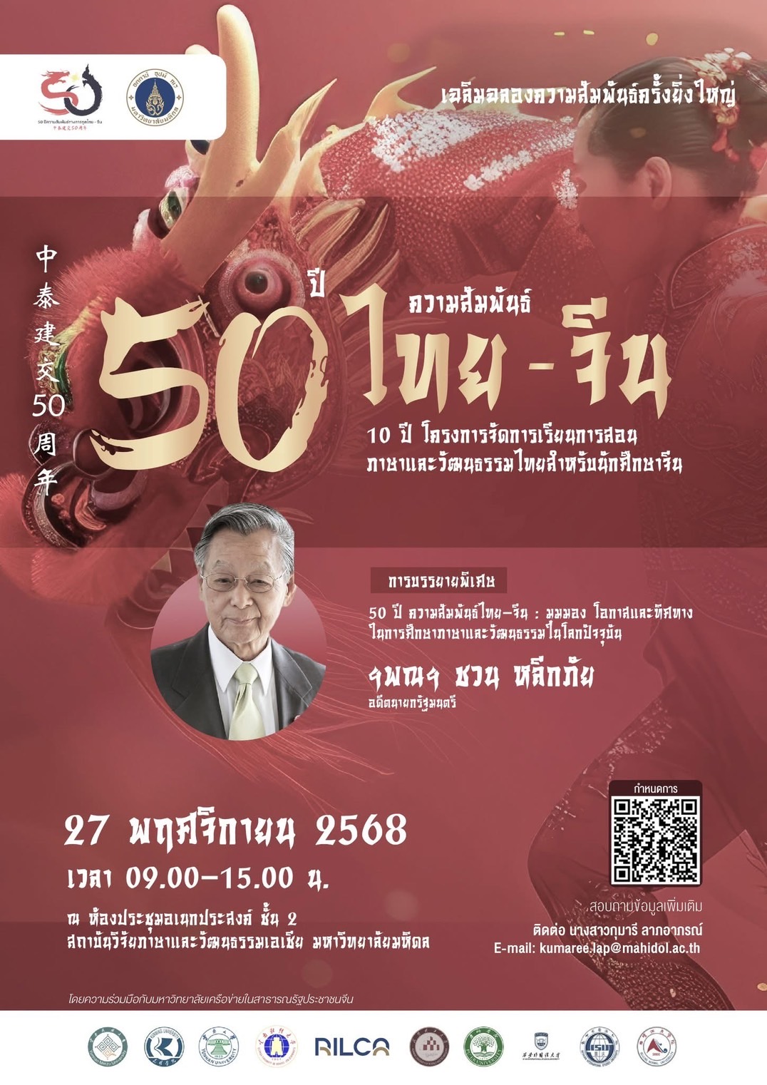 “50 ปี ความสัมพันธ์ไทย–จีน” 🇹🇭🇨🇳