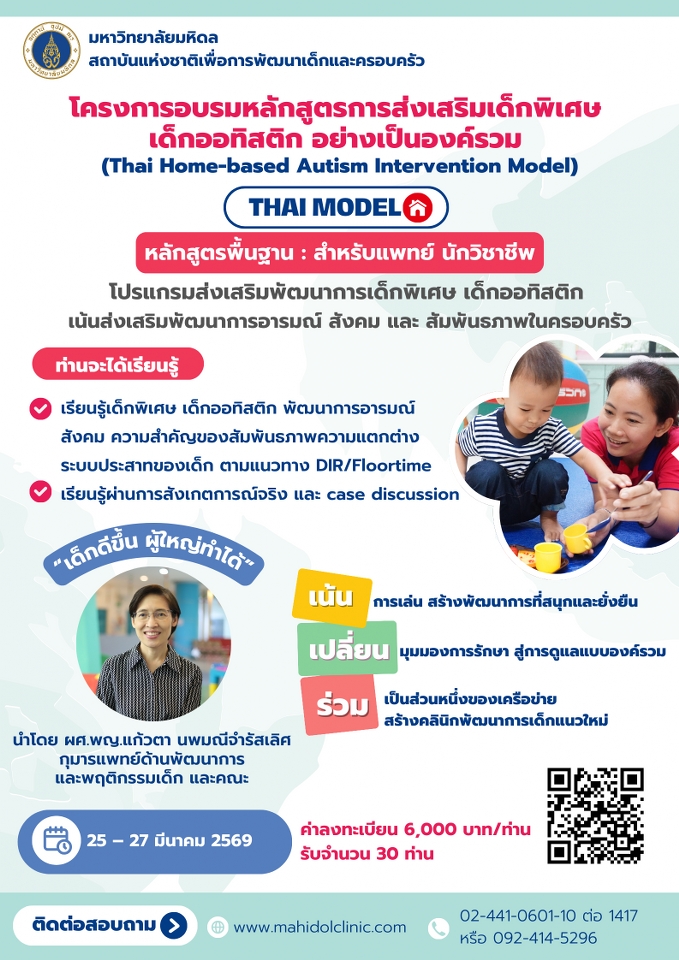 #THAIModel #พัฒนาการเด็ก #เด็กพิเศษ #กุมารแพทย์ #นักวิชาชีพ #DIRFloortime #มหาวิทยาลัยมหิดล #AutismSupport