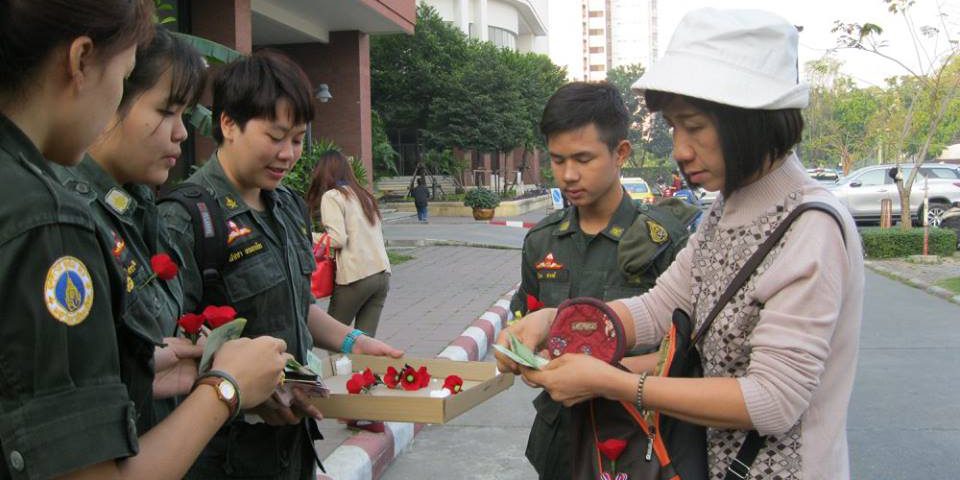 เริ่มกันตั้งแต่เช้าตรู่ (29 มกราคม 2559 ) สำหรับกิจกรรมจิตอาสา ขายดอกป๊อปปี้ เพื่อนำรายได้ช่วยเหลือครอบครัวทหารผ่านศึก ซึ่งมีนักศึกษา จากหลายหลายคณะให้ความสนใจเข้าร่วมกิจกรรม